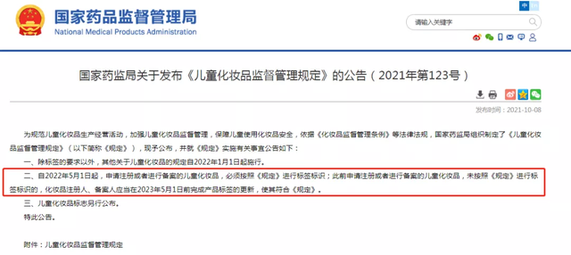 2022年5月1日起,申請(qǐng)注冊(cè)或者進(jìn)行備案的兒童化妝品,其標(biāo)簽必須標(biāo)示“小金盾”;此前申請(qǐng)注冊(cè)或者進(jìn)行備案的兒童化妝品,其標(biāo)簽應(yīng)當(dāng)在2023年5月1日前完成標(biāo)示“小金盾”。
