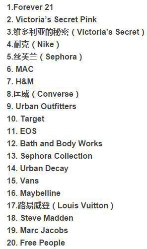 首先我們來(lái)看都有哪20個(gè)時(shí)尚品牌入圍: