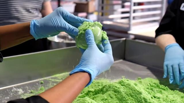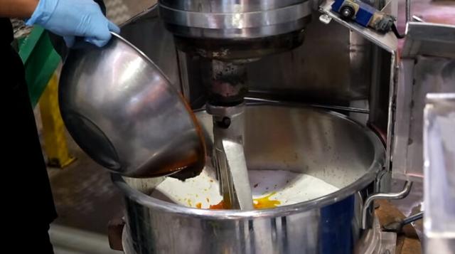 他們會(huì)將各種處理好的天然成分放到一個(gè)大的攪拌機(jī)里面。
